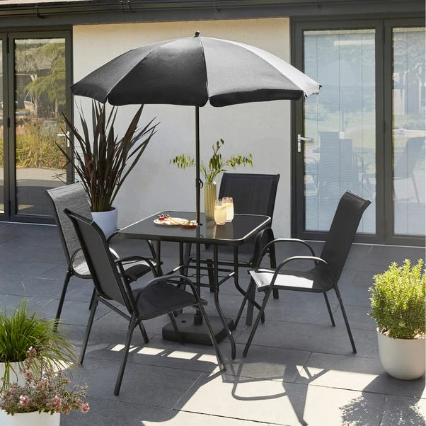 - 4 x Chairs, 1 x Table and 1 x Parasol