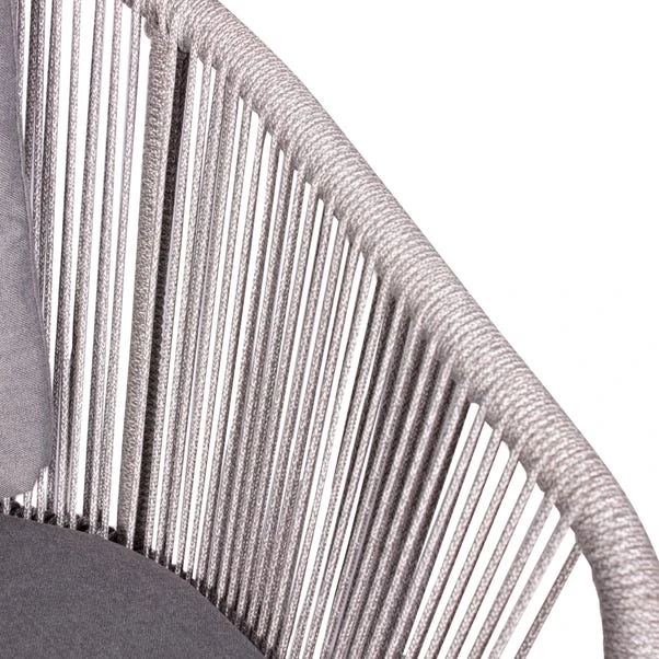 The Aspen Fire Pit Dining Set has a beautiful spray stone effect, creating a modern look. Crafted with a rust proof aluminium frame, this set has tempered safety glass top which can be used for dining purposes. This set comes with a fire pit which has an adjustable flame. We recommend using a 5kg gas bottle when using the fire pit table. Cushions are included.