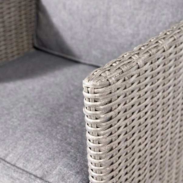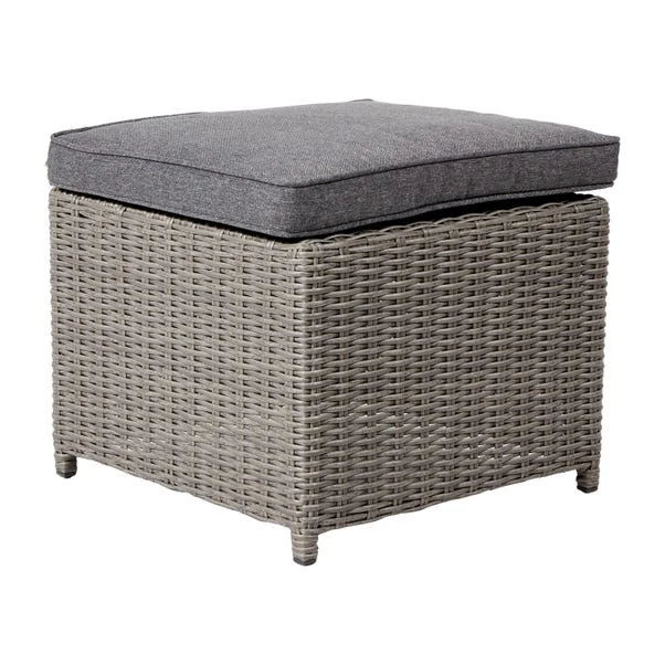 Experience a classy modern seating arrangement in your garden or outdoor space with the Bermuda Cube Set offering four seating spaces with versatile stools to raise your feet or perch on. The stylish design will bring a trendy feel to your outdoor space with the synthetic half round rattan weave effect and the option of a neutral slate grey or stone-grey colourway. With a weather resistant and UV protected design, this set is perfect for a low maintenance choice and each cushion is season-proof and fire retardant so whether it’s pouring down with rain or beaming with sun rays, they will prove long-lasting and durable.