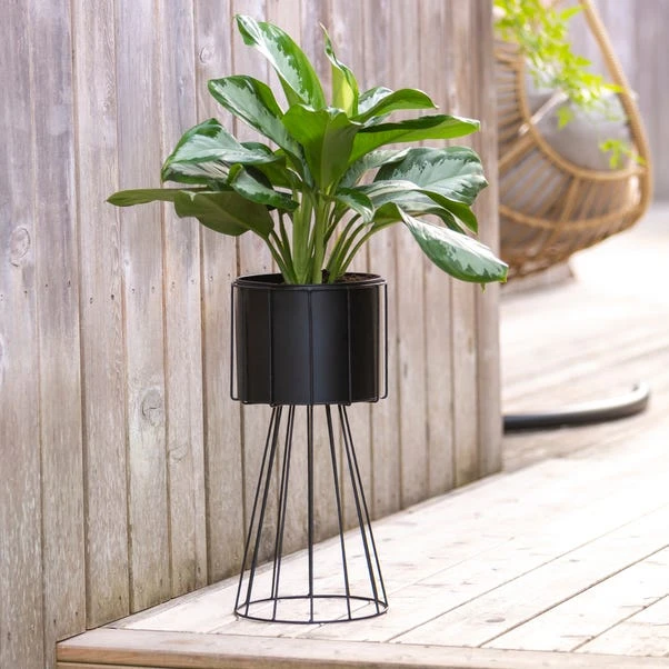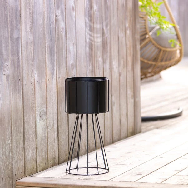Perfect for adding a stylish touch to your garden, this beautiful black wire planter combines classic with contemporary. Crafted from 100% iron, our plant pot is sturdy and durable. In a black colourway, this planter compliments any outdoor space and can be used to showcase all your beautiful plants and flowers. A drainage hole has been added to allow you to grow real plants in your garden.
