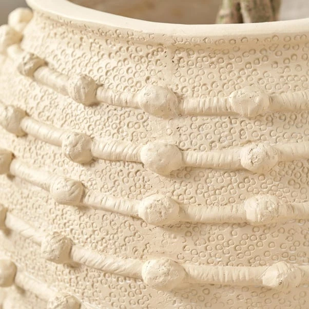 Add texture and style to your space with this striking bobble fibrestone plant pot. Its contemporary design, available in cream or black, brings a modern yet warm touch to any interior. Perfect for displaying faux plants or as a standalone statement piece, it’s available in two sizes to offer versatility to suit different spaces and styling needs. Due to its fibrestone material, this pot is not waterproof, making it best suited for decorative use. A simple yet impactful way to refresh your home décor.
