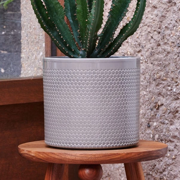 This pot features a striking geometric honeycomb pattern that beautifully complements deep green foliage. Its clean lines and modern silhouette make it a stylish addition to any indoor space, adding a contemporary touch to shelves, side tables, or windowsills. Designed for indoor use only, this pot is perfect for housing your favorite plants, whether it’s a vibrant fern, a cascading pothos, or a sculptural succulent.