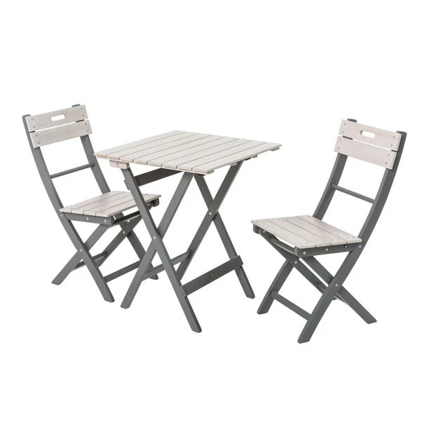 Enjoy the summer sun with this trendy and sleek bistro set. Made from 100% eucalyptus wood this stunning set can fold away for easy storage. Other matching garden accessories and furniture are available.