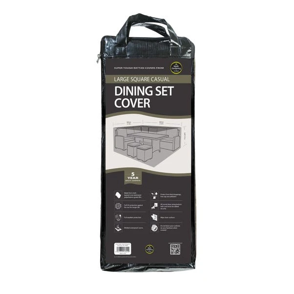 Made from multi-layered cross laminated polyethylene grade material this full weather protection furniture cover is ideal for keeping your corner dining furniture protected. With full UV protection and waterproof welded seams, this cover also includes all-around drawstrings for added security. This cover is ideal for protecting your furniture from bird droppings, tree sap and pollution.