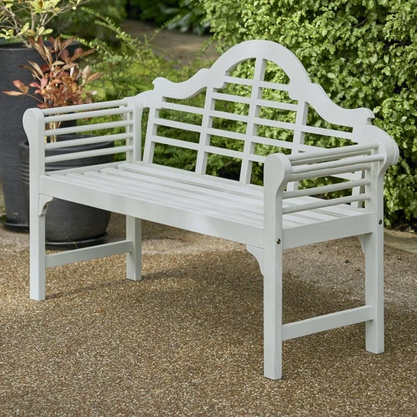 Inspired by the timeless Lutyens design, this bench is a refined and elegant feature for any patio, garden, or conservatory. Crafted from Acacia hardwood, it is known for its exceptional durability and resistance to weathering. The gently arched backrest, paired with the scroll-shaped arms, creates a striking silhouette, making it a statement piece for outdoor spaces. Finished in a tough, weather-resistant sage green PU paint, this bench not only looks beautiful but is built to withstand the elements throughout the seasons.