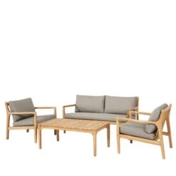 Made from sustainable acacia wood, the set includes a coffee table with a cement-coloured polystone top, along with lounge seating featuring latte polyrope weave and light linen natural oatmeal cushions. Olefin fabric ensures the cushions are quick-drying, stain-resistant, and fade-resistant. Designed for low-maintenance luxury, this set is perfect for long-lasting outdoor relaxation. With a 3-Year Structural Guarantee, it’s a great addition to your garden. Don’t forget to use an Aerocover for protection.