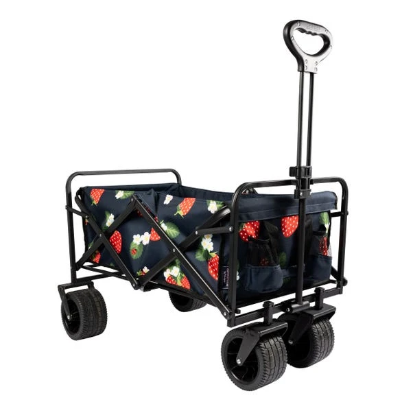 With a design inspired by the classic British summer strawberry, this Extra-large wagon is ideal for camping, festivals, family picnics, and days out. With a carrying capacity of 80kg, this wagon can easily hold everything you need, while providing easy transportability. This wagon is also made using recycled materials, each with approximately 53 PET bottles.