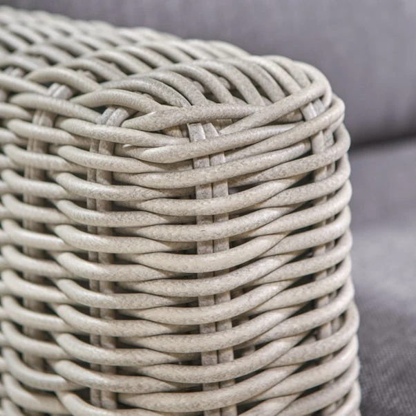 The Tuscany Corner Set comfortably seats up to 6 people, presenting a solid and robust design with a solution-dyed 10mm rattan. With water-resistant cushions and fire-retardant properties, it adds both style and safety to your outdoor space.