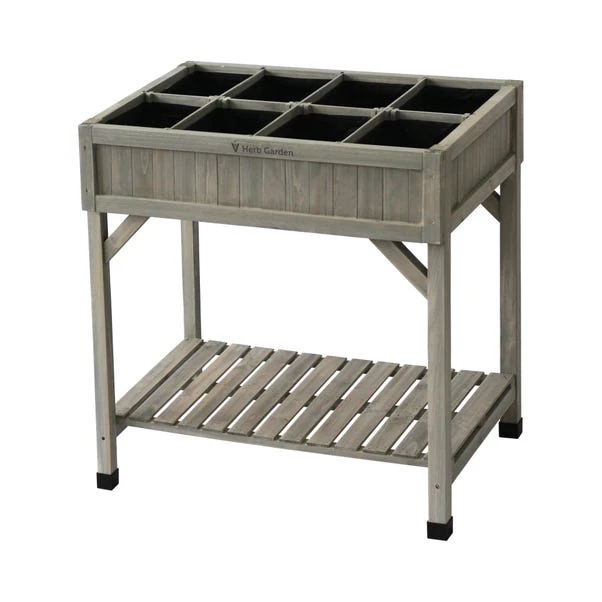 The VegTrug Herb Garden is manufactured from 100% FSC certified durable cedar wood and is both practical and attractive for herb displays. Ideal for a small garden, patio, or balcony, the Herb Garden is easy to assemble from a flat pack with detailed instructions. The planter stands at 80cm high, an ideal height that allows for easy harvesting without needing to crouch down or compromise your posture. The height is also great for easy, quick access when cutting and planting herbs and also assists in keeping slugs and pests at a minimum too. A pre-formed liner and herb divider are included, a useful addition that keeps the herbs in separate pockets. This prevents the herbs from overtaking each other while growing and keeps the soil healthy and well-aerated too, allowing optimum growth. The liners are also self-draining and biodegrade gradually over time. The Herb Planter holds between 40-50 litres of compost and has space for up to 8 separate herb plants to grow separately. Features a shelf underneath the planter, that is perfect for storing garden equipment and accessories such as a watering can, labels, scissors, and various tools. This product is treated with a water-based preservative that is safe to use with an edible harvest and comes complete with strong plastic caps for the feet, ensuring durability for outdoor use.